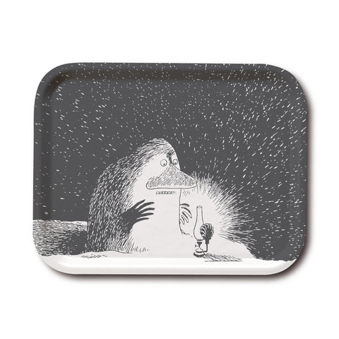Stylish black and white tray featuring the Groke looking at a nightlight. It’s handmade with a classic motif taken from Tove Jansson's original drawings. High quality wood, made in Sweden. Suitable for dishwasher. Guaranteed to bring some style to your dinner table.