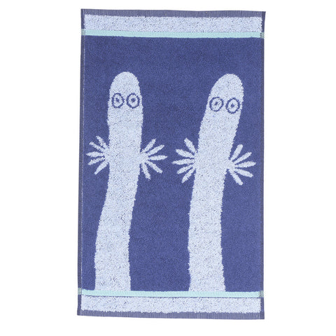 Lovely blue hand towel featuring the Hattifatteners. Size 30 x 50 cm.