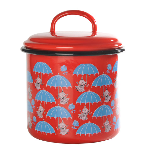 Red Little My enamel jar with blue details brings some color and joy into your home. Perfect for keeping cookies, sweets or treasures in them!