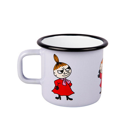 White smaller enamel mug featuring Little My in red coloring. Brighten your coffee- and teamoments with this mug. Fits even to a smaller hand due to its smaller size. Muurla combines design with durability in this retro Moomin enamel mug.