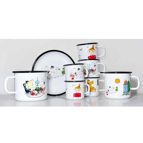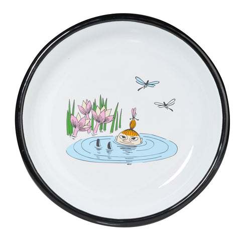 Colorful enamel plate featuring Littly My. Brings some color to the dinnertable. Muurla combines design with durability in this retro Moomin enamel plate.