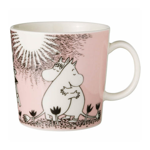 This pink Moomin mug featuring Snorkmaiden and Moomintroll hugging has become a classic since it was released in 1996. It's elegantly illustrated by Arabia artist Tove Slotte-Elevant. The illustrations on the Moomin mug can be found in the second and third Moomin comic books. Your collection of Moomin mugs will not be complete without this lovely piece. Also see the other parts of the Moomin Love series.