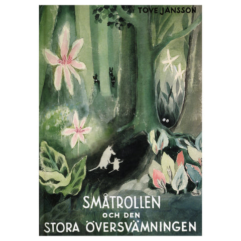 Den allra första muminboken, Småtrollen och den stora översvämningen, utkom 1945. I den söker mumintrollet och hans mamma efter den försvunna pappan och upplever faror och förskräckligheter innan familjen lyckligt återförenas. Till slut hittar de också en liten dal som är vackrare än någon de sett tidigare.