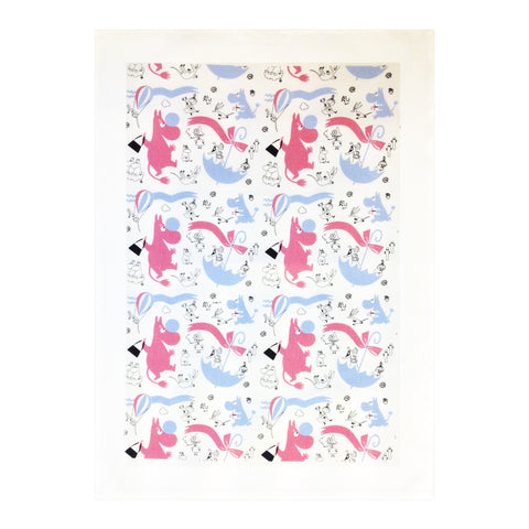 Ljuvlig vit kökshandduk med färggranna detaljer, gjord för Stockmanns 150-års jubileum. Handgjord i klassiskt Muminmotiv från Tove Janssons originalritningar, på denna handduk ser vi älskade karaktärer från Mumindalen, som säkert hämtar glädje till köket. Hög kvalitet i bomull och linne, tryckta i Sverige.